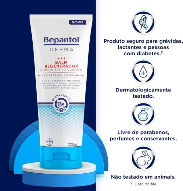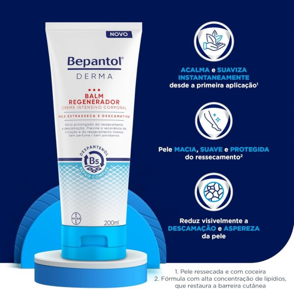 Dermatologicamente testado, o Bepantol Derma Balm Regenerador é indicado para o uso diário e pode ser aplicado em todo o corpo, oferecendo proteção, suavidade e sensação prolongada de pele saudável.