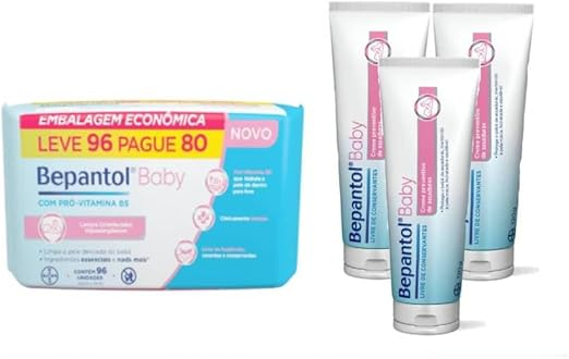 O Kit Bepantol Baby foi desenvolvido para oferecer proteção completa e cuidado diário para a pele sensível do bebê desde o nascimento. Criado pela Bayer, une a eficácia do creme antiassaduras Bepantol Baby com a suavidade dos lenços umedecidos, garantindo higiene, hidratação e conforto em todas as trocas de fralda.