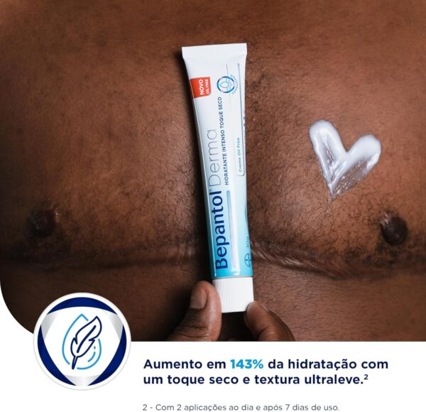O Bepantol Derma Creme Multirrestaurador é um hidratante corporal da linha Bepantol Derma Hidratante, formulado com alta concentração de dexpantenol (pró-vitamina B5), ideal para regiões mais ressecadas do corpo que precisam de hidratação intensa e cuidado especial, como pés, calcanhares, cutículas, cotovelos, joelhos e áreas tatuadas. Bepantol Derma Toque Seco é um creme hidratante facial e hidratante corporal para a pele OIL FREE, desenvolvido com alta concentração de dexpantenol, um ativo que auxilia no processo de hidratação intensa e regeneração profunda da pele. Combine Bepantol hidratante rosto ou corpo com um hidratante facial e hidratante labial para uma skincare completa.